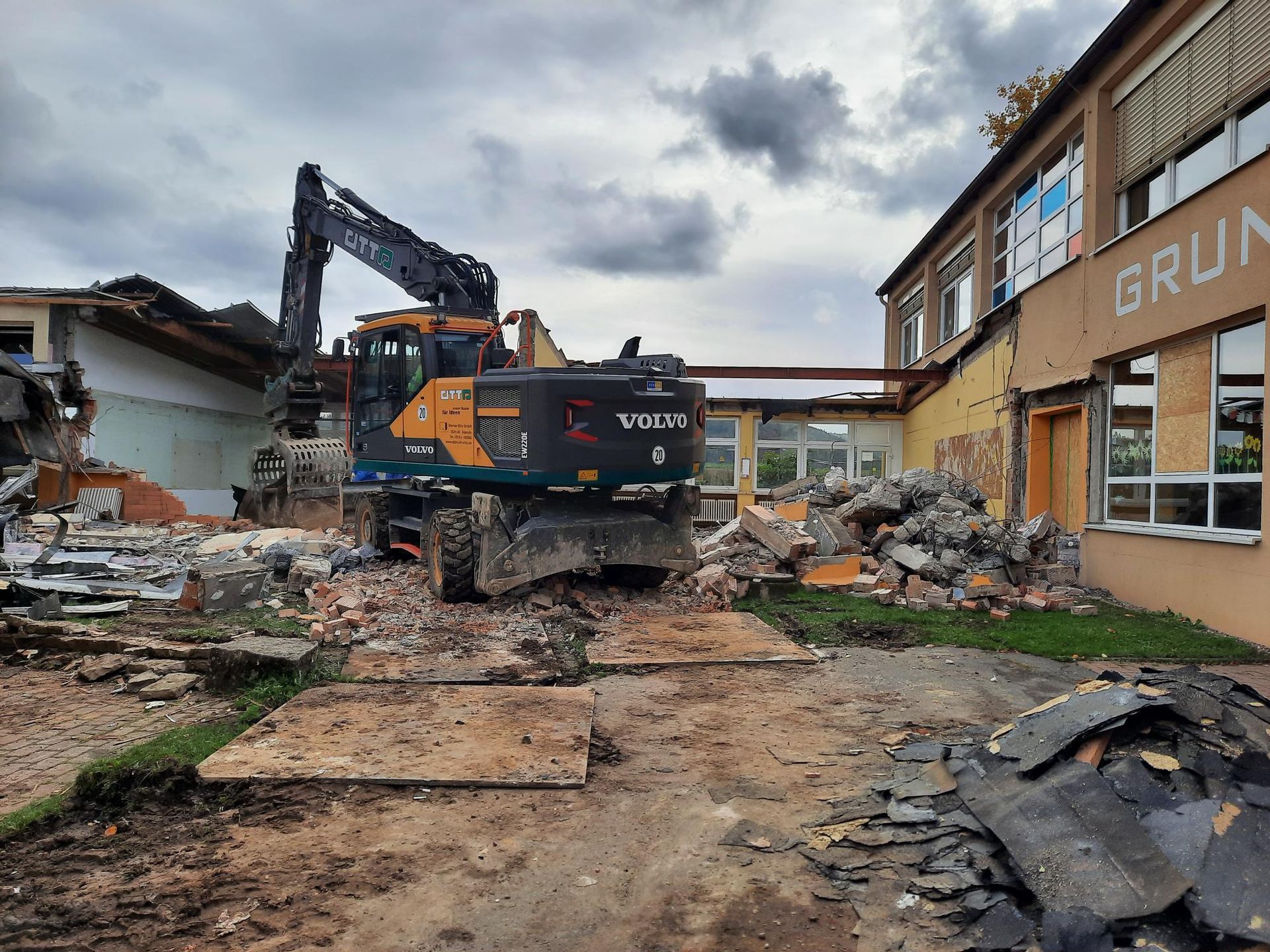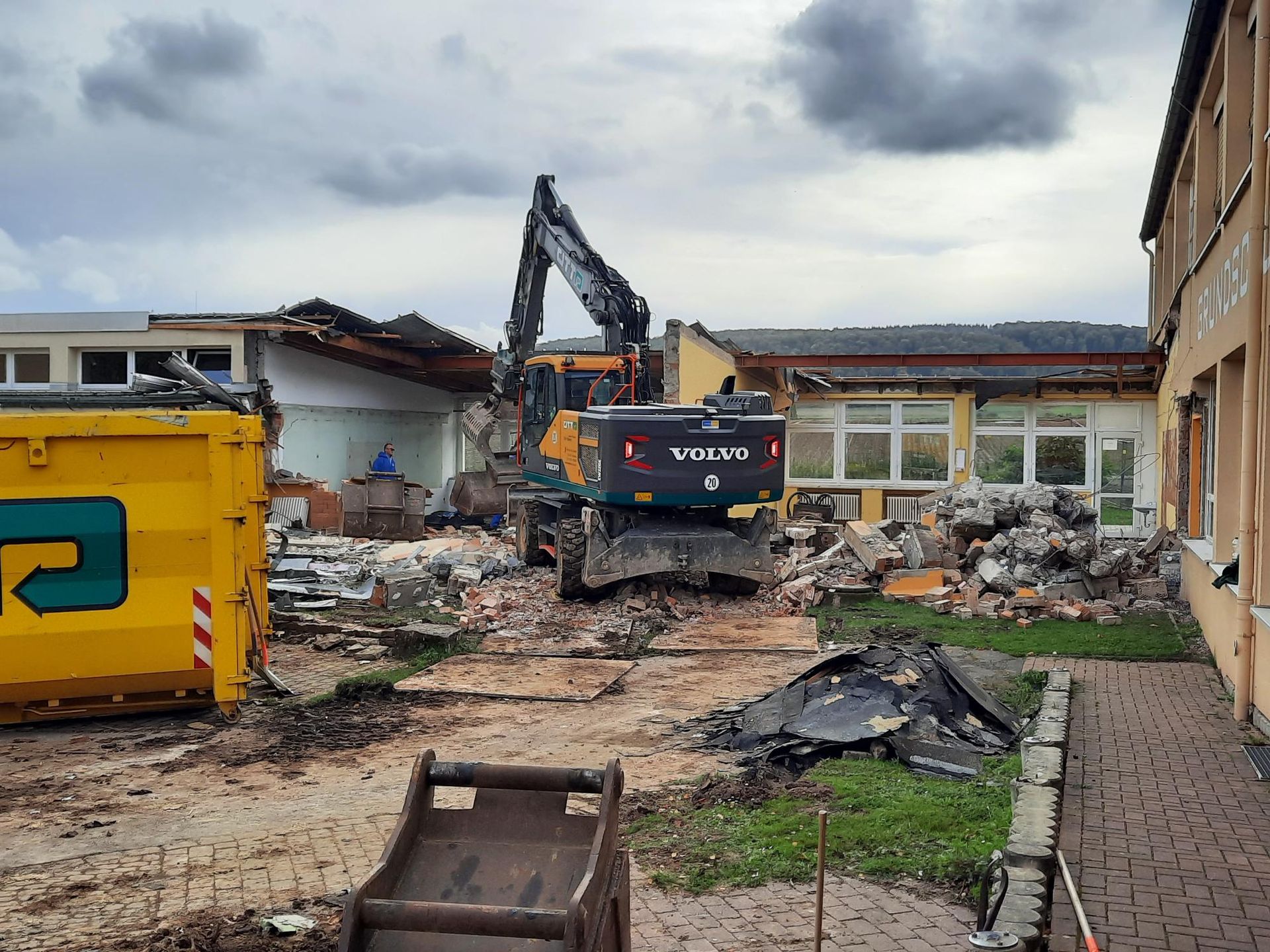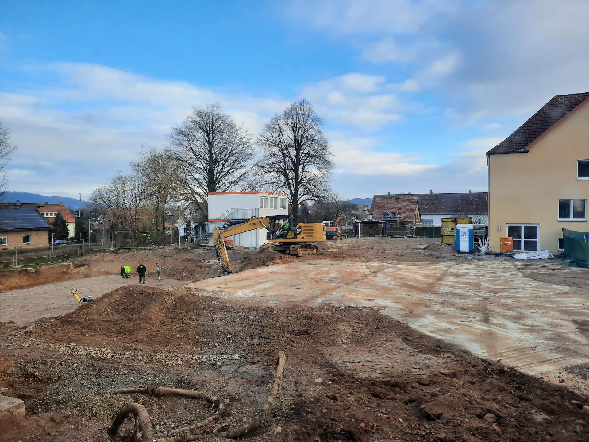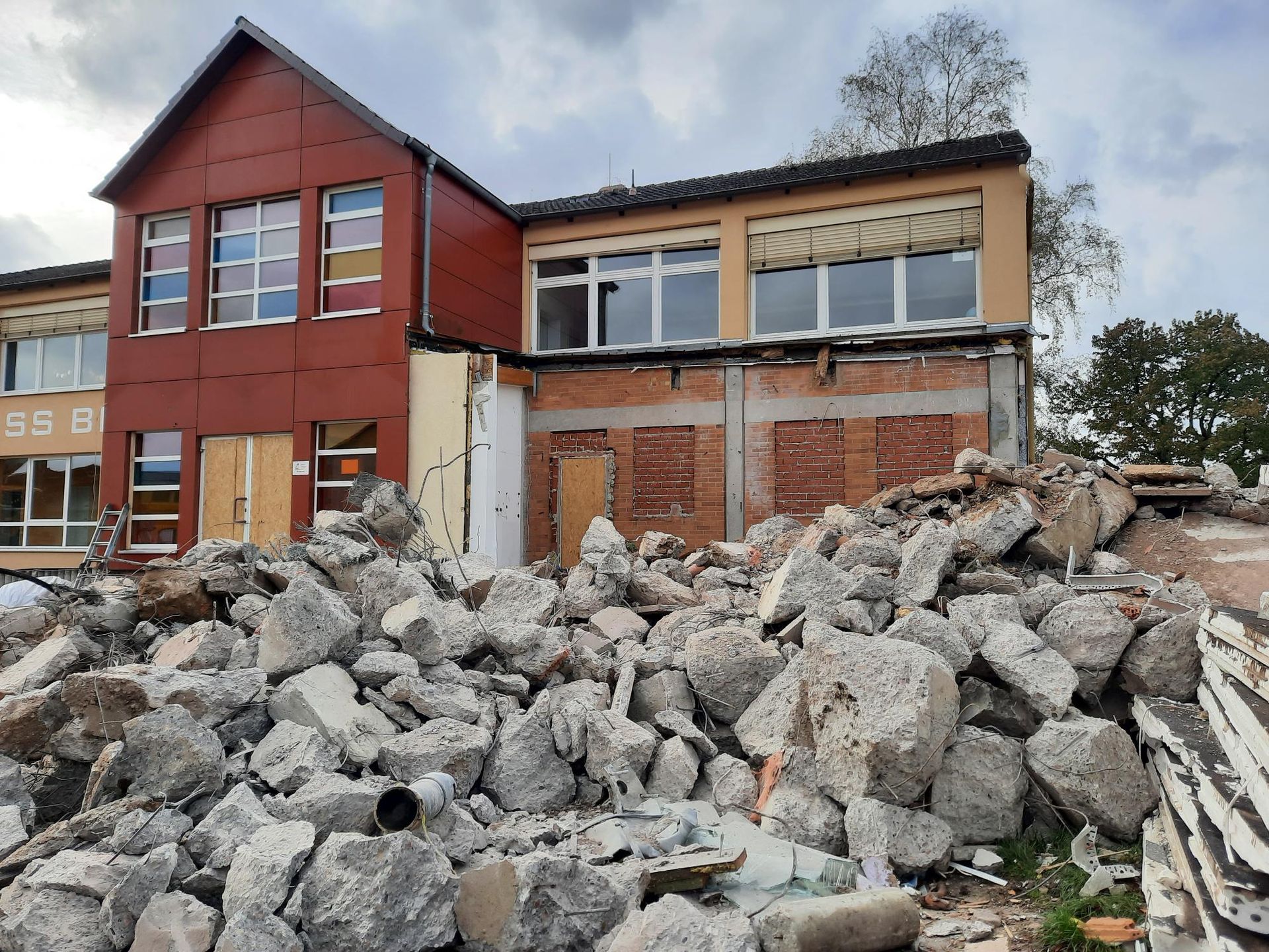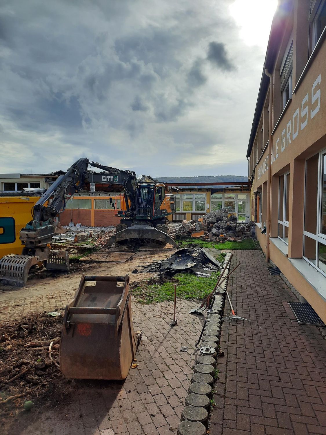wird derzeit der provisorische Schulhof für die Schüler:innen vorbereitet, damit in den Herbstferien auf dem Schulhof die ersten Abrissarbeiten für den Neubau stattfinden können. Dies hat zur Folge, dass es nach den Herbstferien, neben einem neuen Schulhof auch einen neuen Eingang für die Schüler:innen gibt.